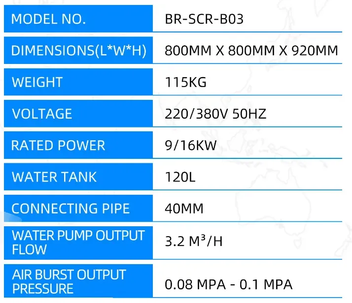 ● May built-in na mataas na kapasidad na water pump at air pump; ang air burst mode at bubble mode ay mas lubusang nakakalinis ng SCR/DPF.